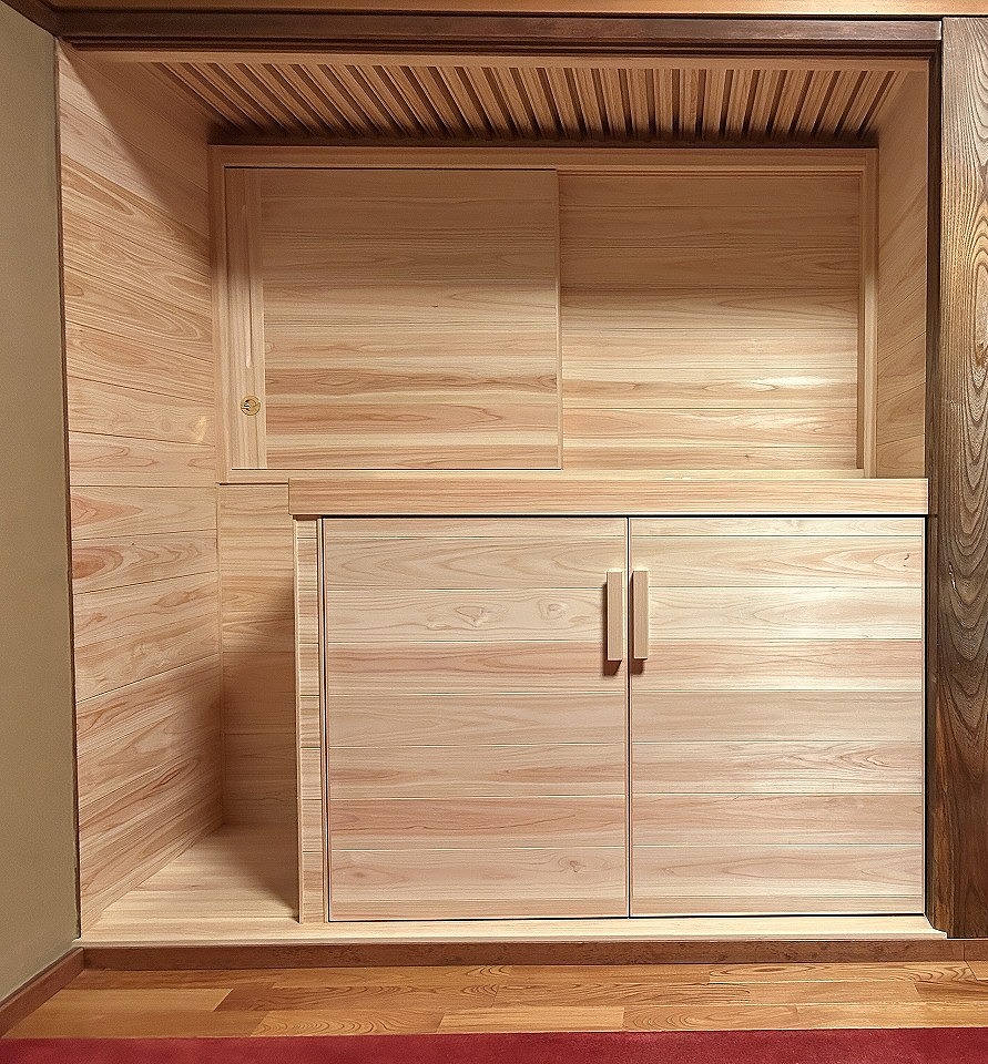 午後は加納建具さんが、仏壇脇のプチ改修の窓と扉を入れていただきました。