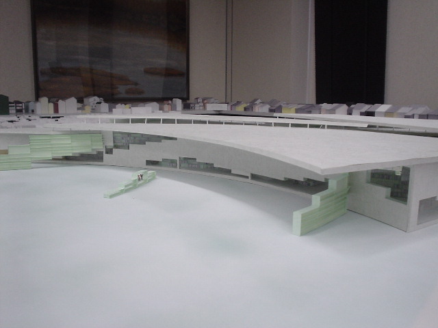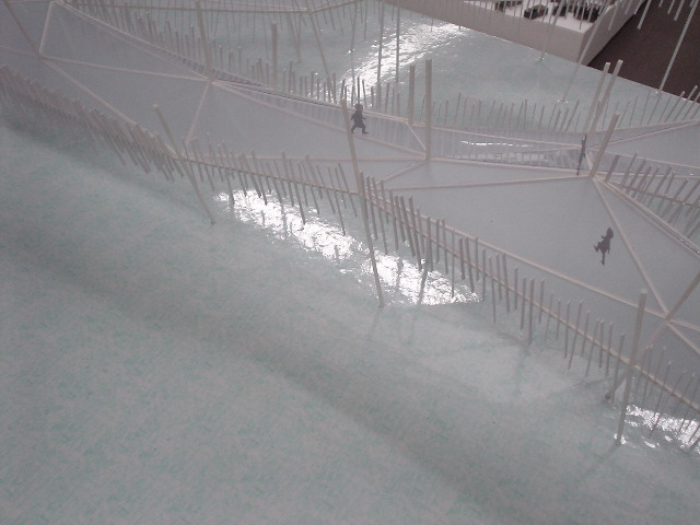 矛盾する要求のバランスをとっていかなくてはならないと担当された原広司の京都駅ビルのプロジェクトのすだれのような鉄骨についての説明と支持レベルについての方法を解説。