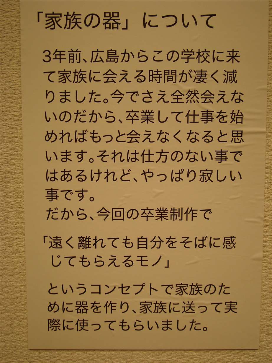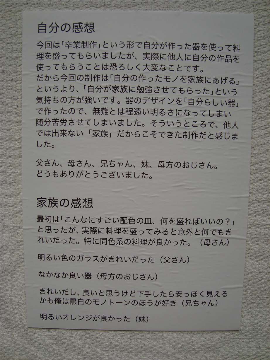 卒業制作の椅子と器。鉄板の椅子は製作中に見ているので作者の制作の意欲と